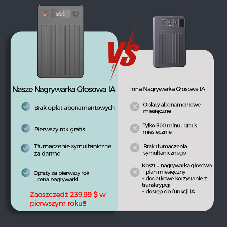 Nielimitowane, bezpłatne korzystanie z funkcji transkrypcji AI przez pierwszy rok;