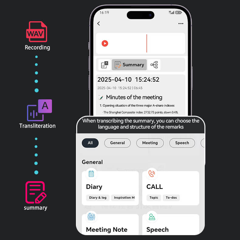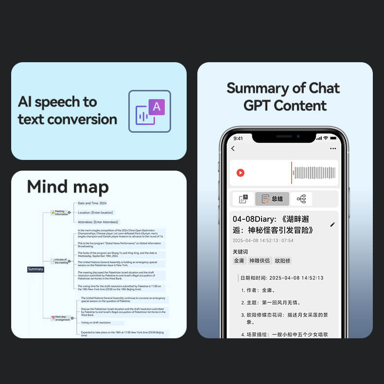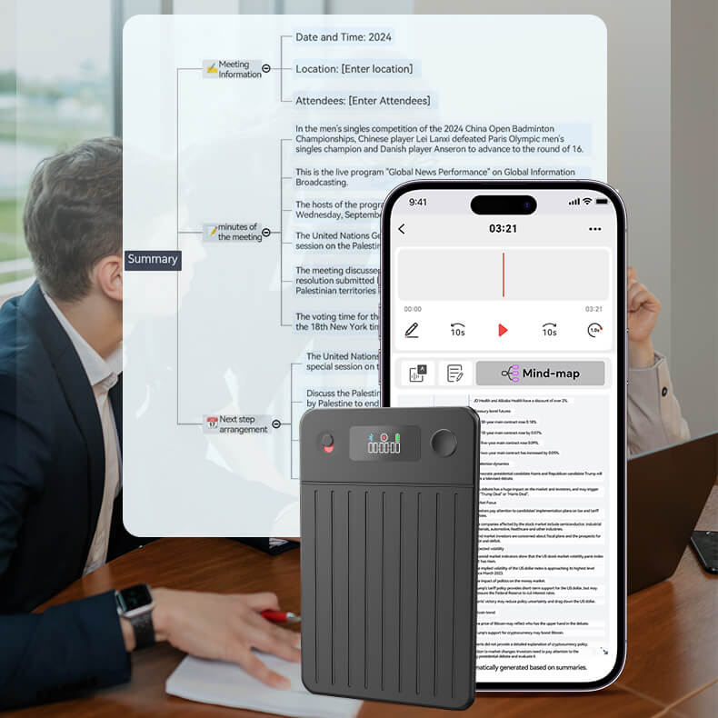 Funkcje: Transkrypcja AI, podsumowania, tłumaczenie, mapa myśli