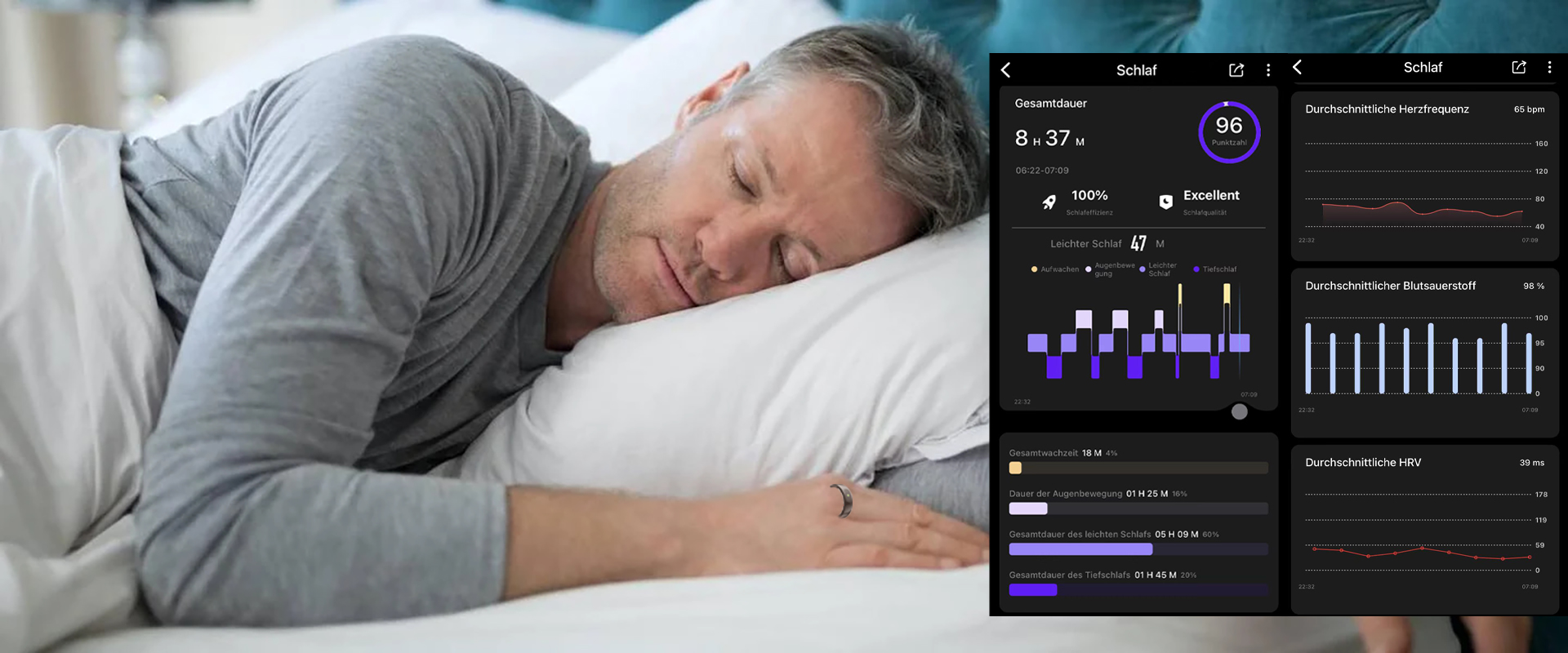 【Monitorowanie snu】Użyj Smart Ring Health Tracker, aby kompleksowo analizować nocne wzorce snu. Monitoruje głęboki sen, sen płytki, sen REM i czuwanie, zapewnia szczegółową strukturę snu i śledzi jakość snu, aby pomóc Ci lepiej zrozumieć i poprawić stan odpoczynku.